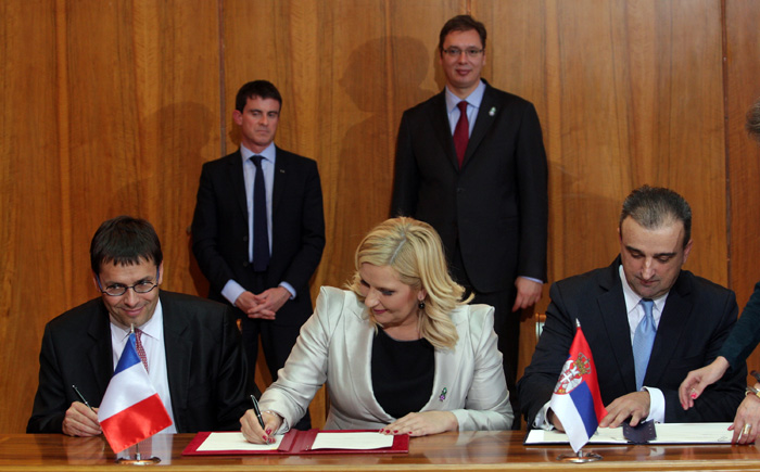 Potpredsednik Vlade i ministar građevinarstva, saobraćaja i infrastrukture prof. dr Zorana Mihajlović, potpisala je danas u Palati Srbije tokom posete premijera Francuske Manuela Valsa, dva sporazuma o saradnji sa tom zemljom, i to u oblasti infrastrukture i razvoja međunarodnih aerodroma.